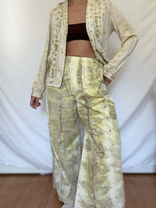100% Cotton Plant Dyed Lounge Pant - Marigold/Walnut/Iron- XS/S