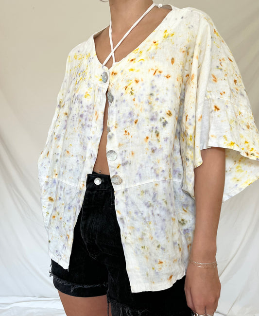 100% Linen Plant Dyed Button Up - Sumac/Coreopsis/Marigold - XL