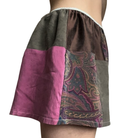100% Silk Patchwork Sleep Shorts - Brown/Paisley - M/L