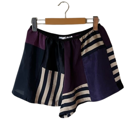 100% Silk Patchwork Sleep Shorts - Purple/Black - M/L