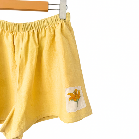 Indigo + Marigold Plant Dyed Patchwork Shorts - 100% Upcycled Cotton